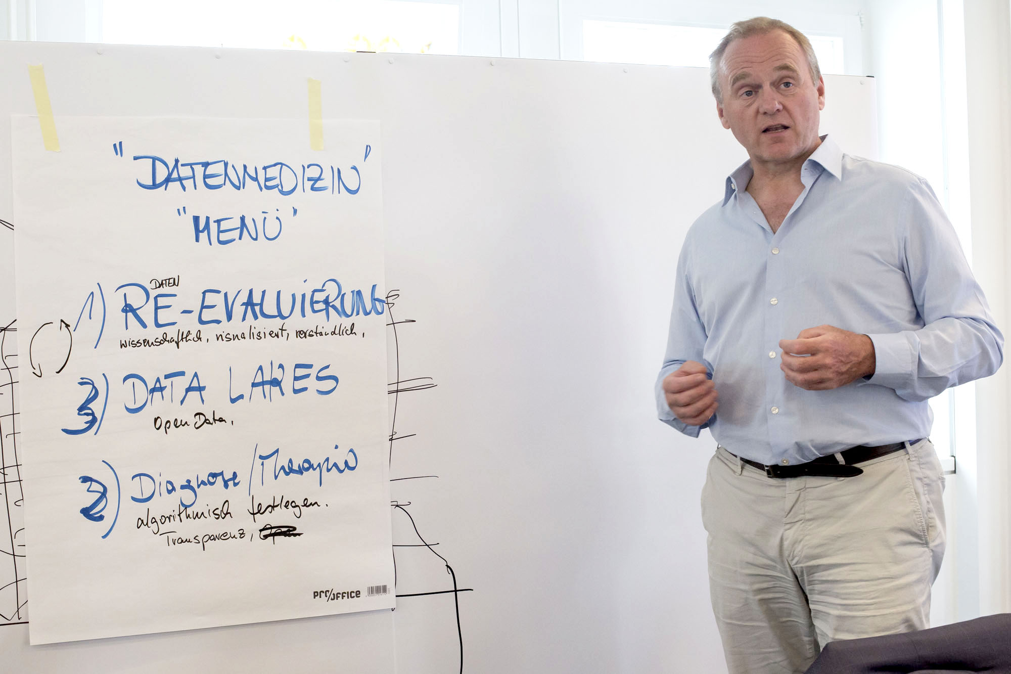 Großer Konferenzsaal, 11.00 Uhr an einem Samstag im Mai: 25 Gesundheitsexperten aus ganz Deutschland haben sich vier Stunden Zeit genommen, um im offenen Plenum und in drei Arbeitsgruppen die Zukunft der modernen Datenmedizin zu diskutieren. Die Überschrift: „LAB“. Eine experimentelle Form des Austausches im Wägen und Wiegen. Oder wie Moderator Christopher P. Peterka es formulierte: „Raus aus dem Elfenbeinturm, Duzen bis 15.00 Uhr in offener Kultur, kritisch und zupackend.“ Und es funktioniert! Dabei unterliegt aber auch das ursprüngliche Konzept, onkologische, neuro-degenerative und kardiologische Krankheitsbilder in den Fokus zu nehmen (führende Uni-Professoren dieser Fachrichtungen waren vor Ort) einem disruptiven Prozess. Den Startschuss gibt der UKE-Neurologe Prof. Dr. Christian Gerloff: „Wollen wir ernsthaft den Begriff Datenmedizin in den Mittelpunkt stellen?“ Und so dominiert das Thema des befähigten, mündigen Patienten die Diskussionen des Vormittags. Patient Empowerment wird zum Buzz Word der Fachdiskussion und schärft den Blick für eine tröstliche Botschaft: Die medizinischen Daten gehören den Menschen, und Social Media sowie Patients Clubs geben ihnen weitere Möglichkeiten, als fachkundige Gesprächspartner dem Arzt oder dem Krankenhaus gegenüberzutreten. Also: Vor dem Patient Profiling, der Erfassung aller relevanten Daten, steht die Frage: „Dürfen wir auf Ihre Daten zugreifen?“.